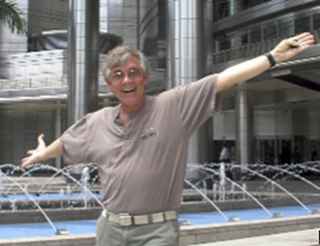 | Jim Campbell in front of the Twin Towers in Kuala Lumpur |