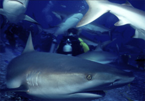 | Jim feeding sharks during the Stewart Coves Dive in the Bahamas, Nassau |