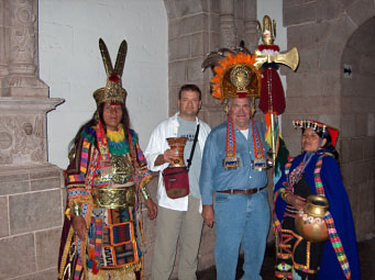 Les and son, Paul (center R-L), pose with the locals in Macchu Picchu,