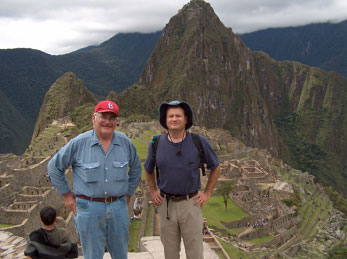 Les and son, Paul (L-R) pose for a breathtaking via atop Macchu Picchu,