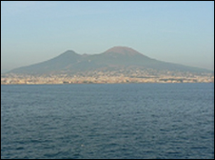 View from the QE II of Naples, Italy and Mt. Vesuvius and Pompeii. |